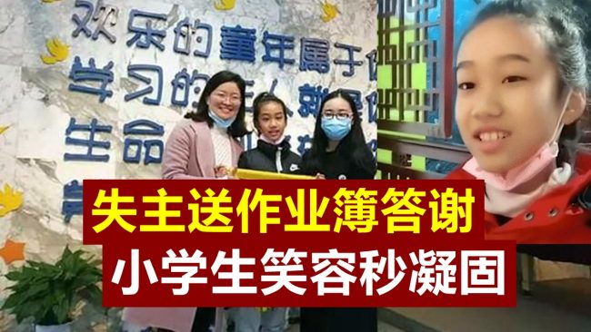 失主送作业簿答谢 小学生笑容秒凝固