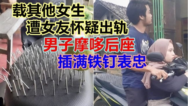 印尼一名男网民遭女友怀疑出轨,他为了表明自己的忠诚,干脆将摩哆的后座全装上铁钉,以表示自己不会载其他女子,帖文…