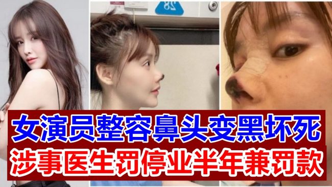 女演员整容鼻头变黑坏死 涉事医生罚停业半年兼罚款