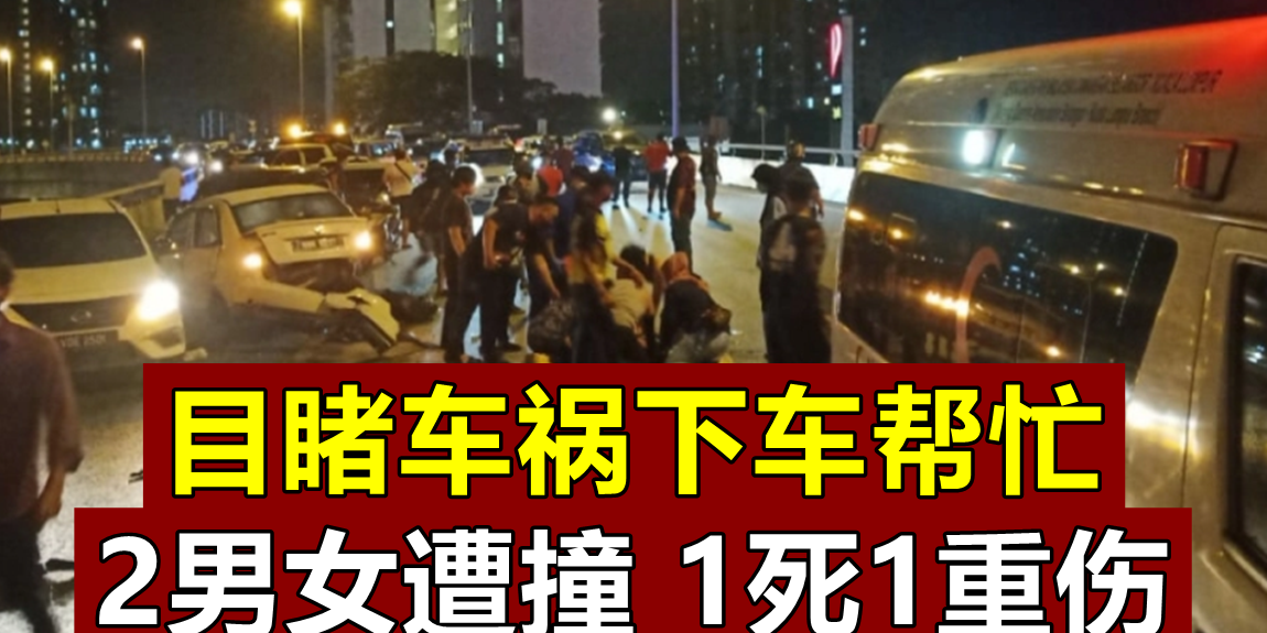 (吉隆坡29日讯)热心民众目睹车祸后下车帮忙,但却因身处转弯处,加上晚上的关系,结果其中两名民众遭后方驶来的车子撞上,而酿1死1重伤惨剧。